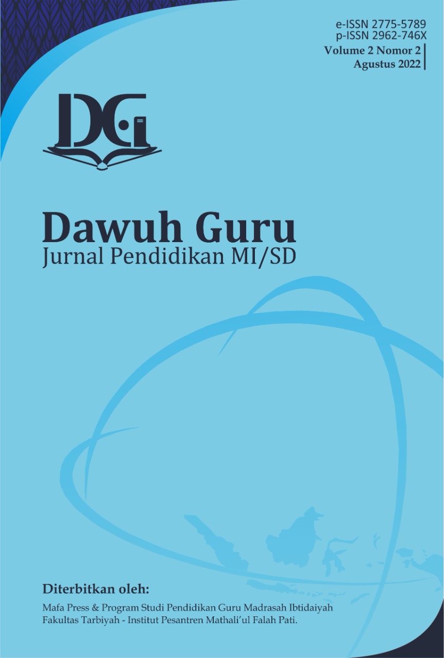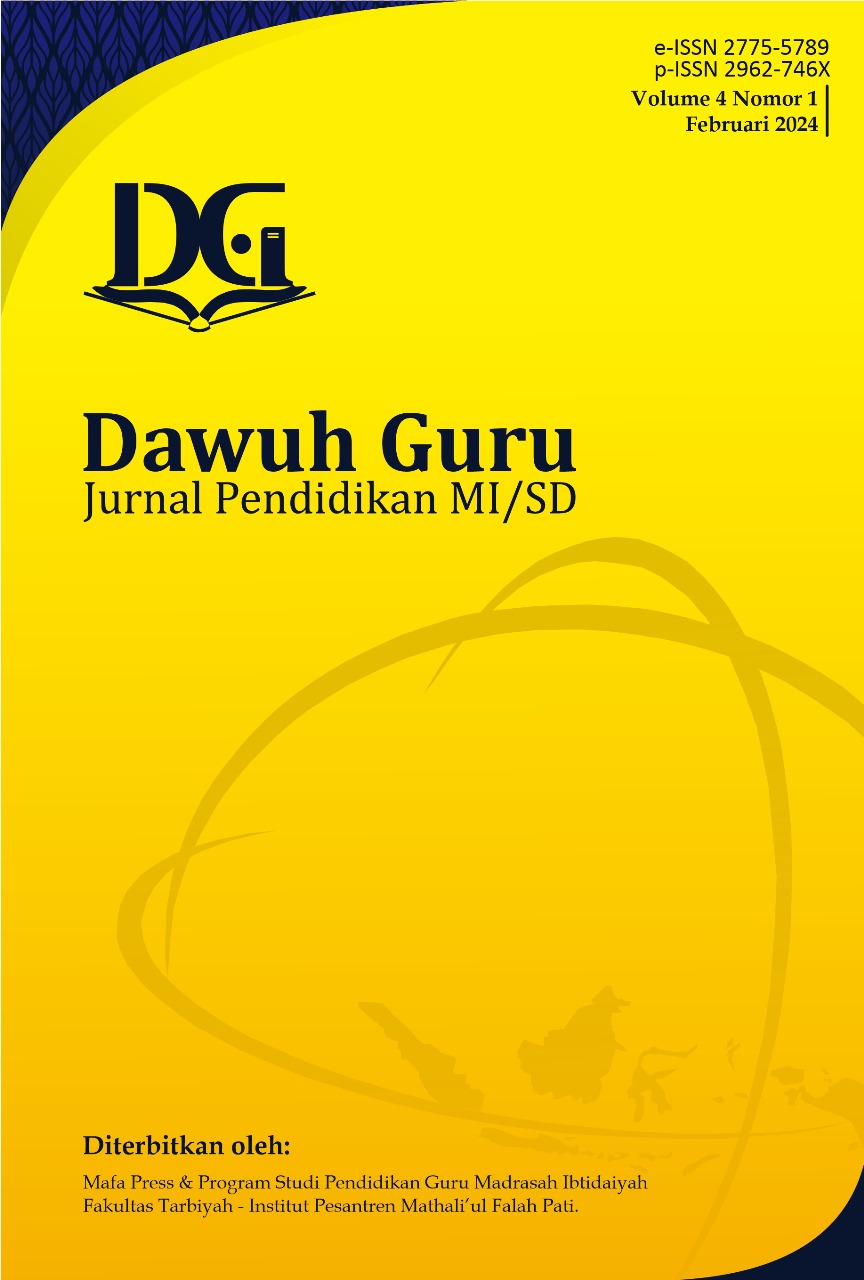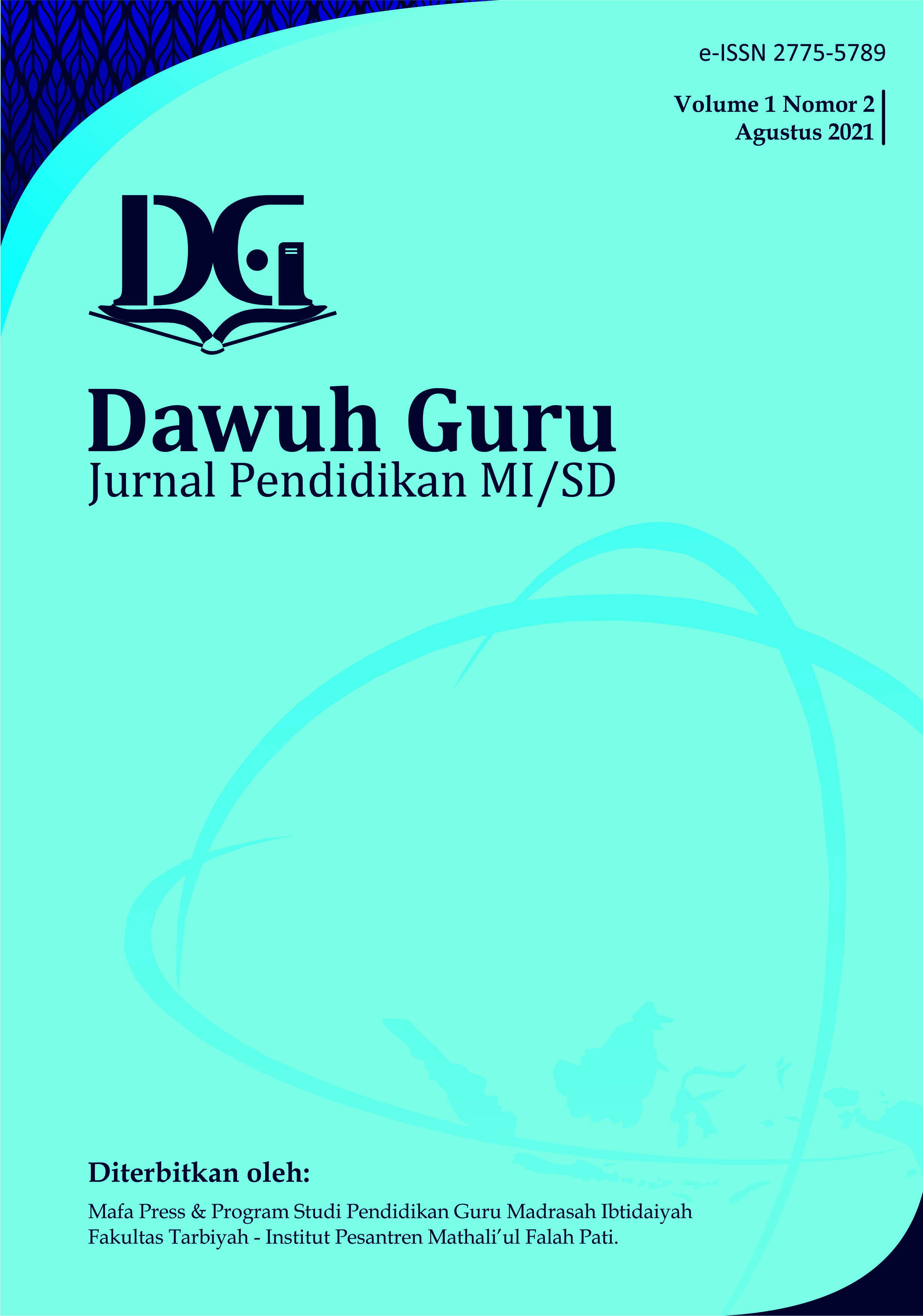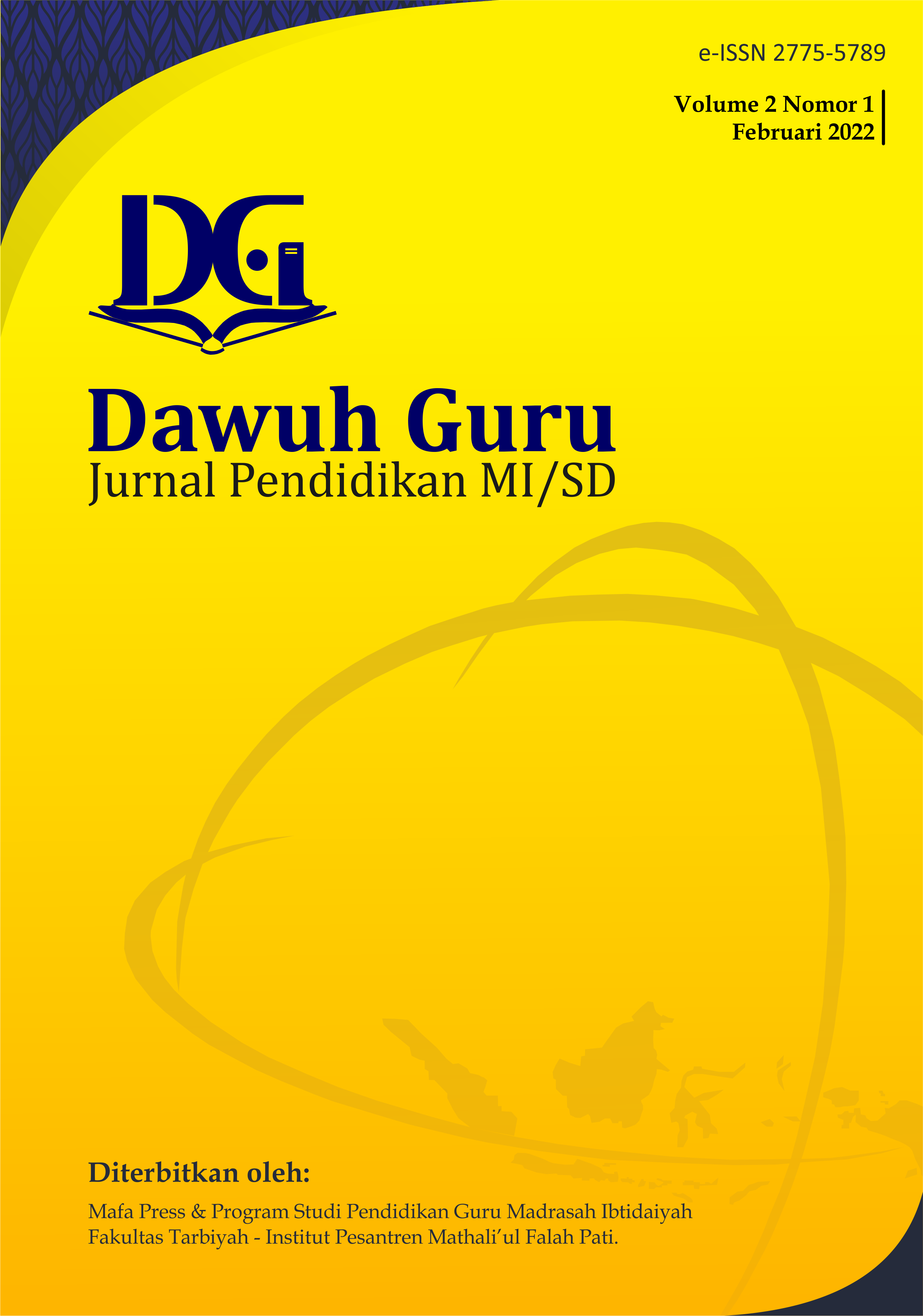 Vol 2 No 1 (2022)Dawuh Guru: Jurnal Pendidikan MI/SD mulai edisi Volume 2 Nomor 1 Februari 2022 ini akan menerbitkan 8 (delapan) artikel hasil penelitian. Jumlah ini bertambah dari edisi volume 1 yang menerbitkan 7 (tujuh) artikel baik pada edisi nomor 1 maupun nomor 2 tahun 2021. Penambahan jumlah artikel yang diterbitkan merupakan hasil kesepakatan bersama tim editorial beserta saran dari mitra bestari. Hal ini dilakukan untuk memperbanyak publikasi ilmiah terkait pendidikan pada jenjang MI/SD. Selain itu juga memberikan kesempatan kepada para peneliti supaya hasil penelitian yang telah dilakukan dipublikasikan secara terbuka sehingga bisa dibaca oleh masyarakat luas.